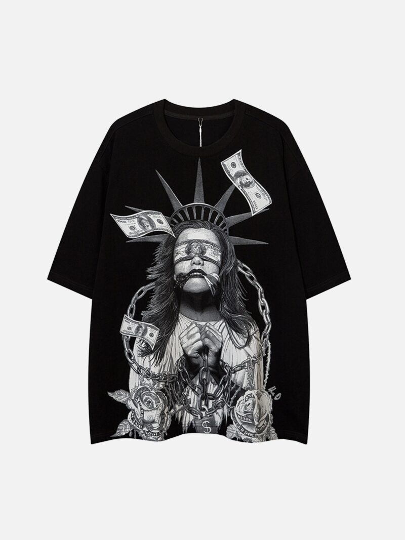 Chained Statue of Liberty and Cash Print T-shirt