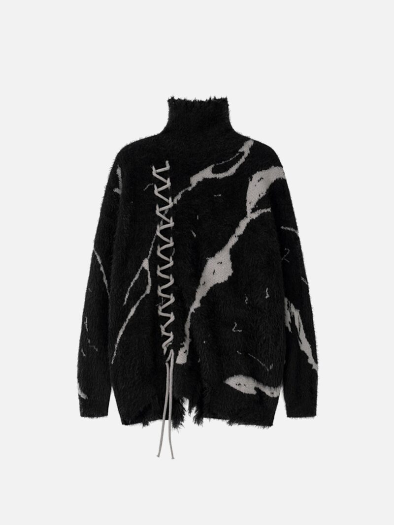 Rip Damage Design Turtleneck Knitwear Sweater – 1525